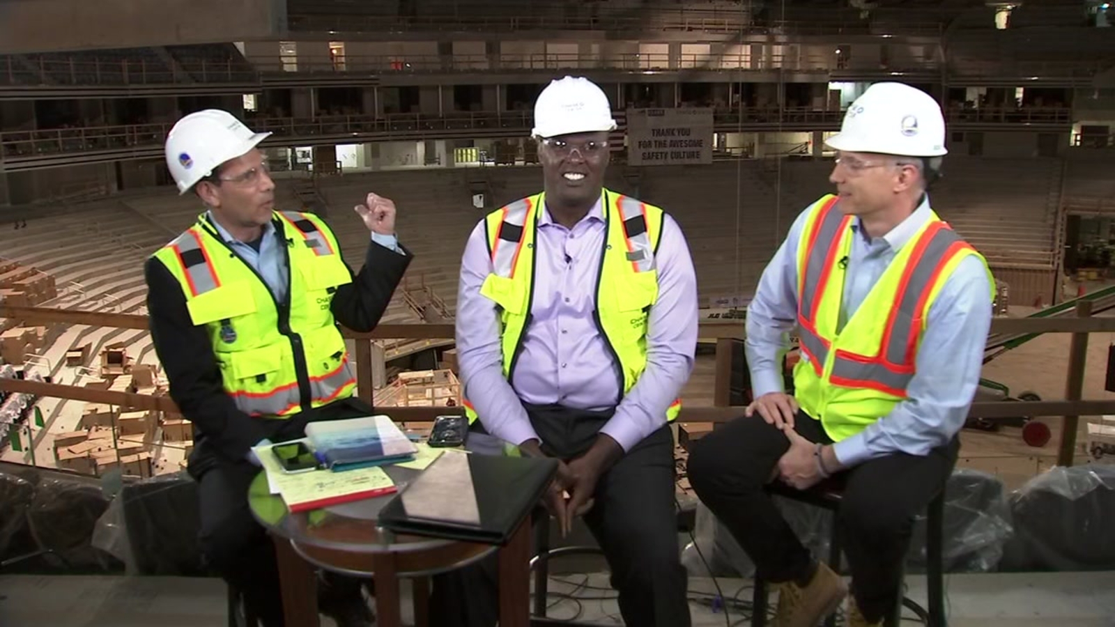 ABC7 Sports had to set up their studio in an active construction zone to do it, but all agree it was a historical moment worth the effort.