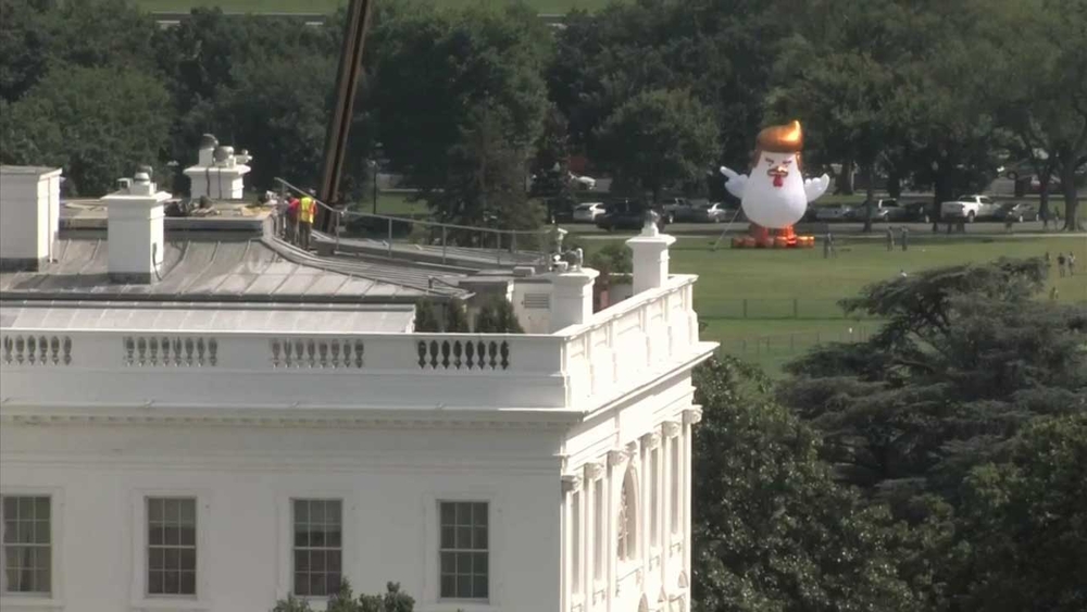 VIDEO: Giant inflatable chicken appears behind White House