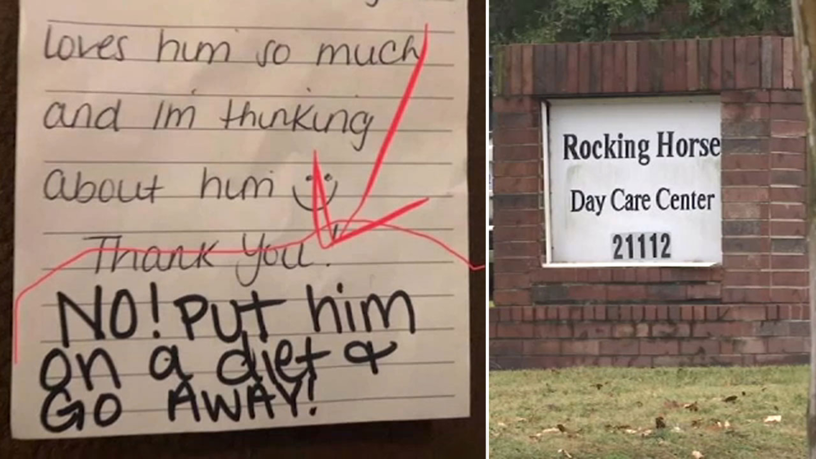 She said she had never had a problem with the Rocking Horse day care until this incident.