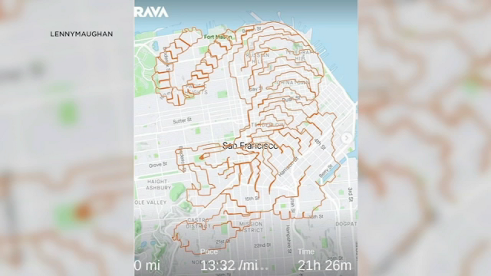One man, Lenny Maughan, has been using the streets of San Francisco to create etch-a-sketch like pictures, with the route map of his run as his paint.