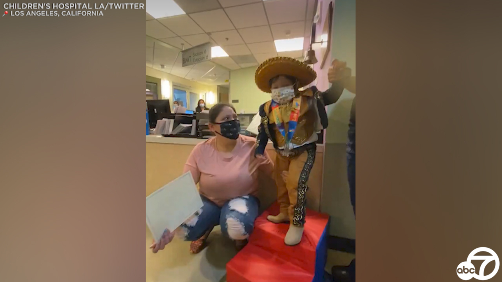 On Tuesday, CHLA tweeted the video of the boy, nicknamed "Nano," ringing a bell to mark his last treatment, surrounded by family and hospital staff.