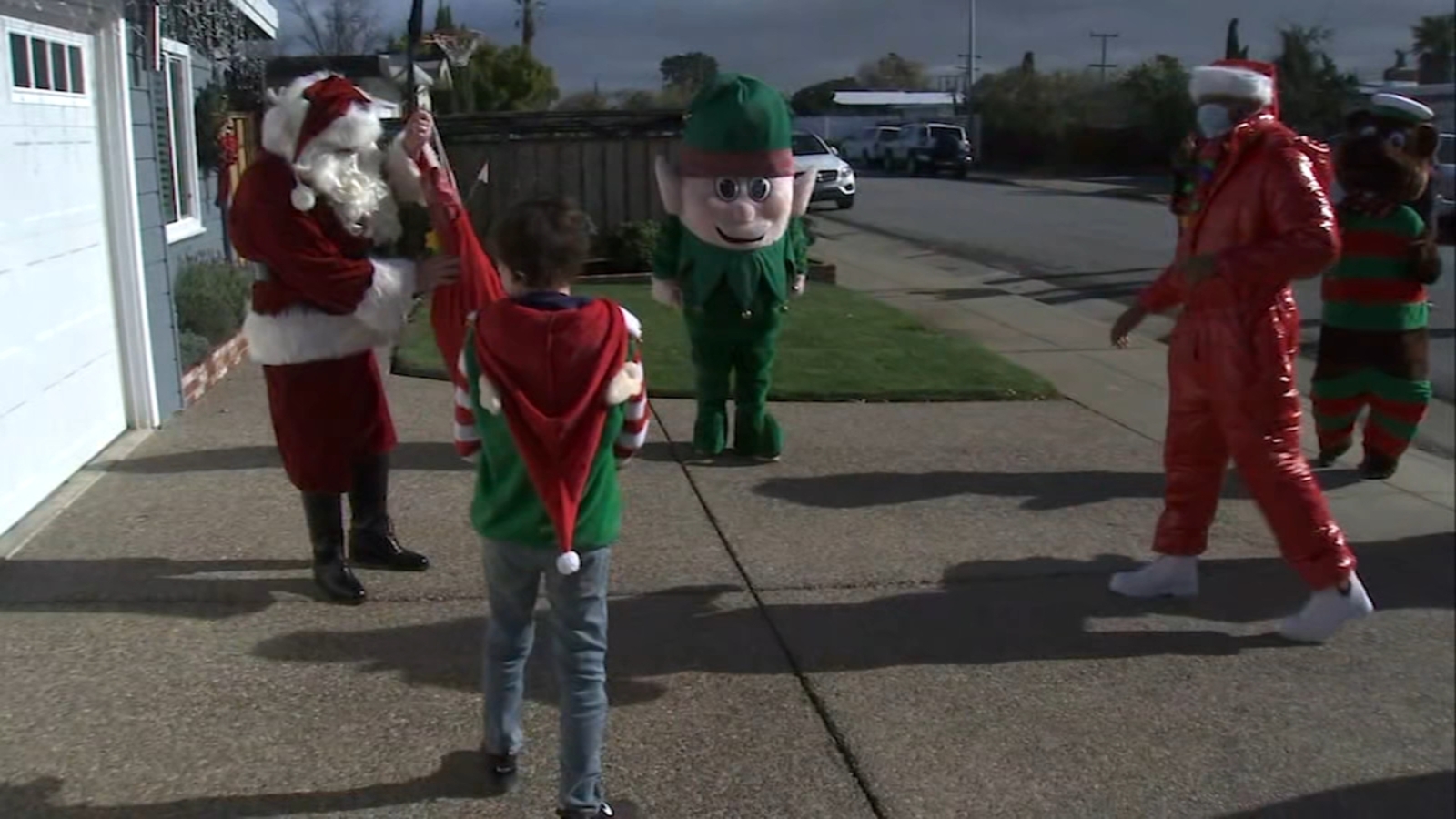 So some good elves from the San Mateo and San Francisco police departments dressed up as Santa, Rudolph and Frosty the Snowman to bring him some cheer.