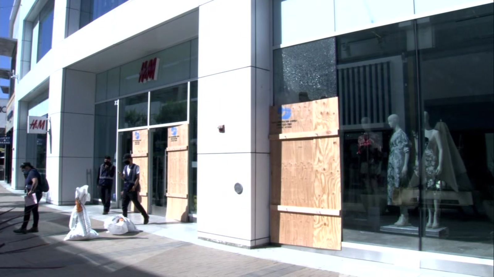 Several stores were hit last night. The Ray-Bans store hardly has any sunglasses left inside, while the floor is covered with shattered glass. Victoria's Secret, H&M, Macy's, Banana Republic, The Gap all had broken glass and lost merchandise.