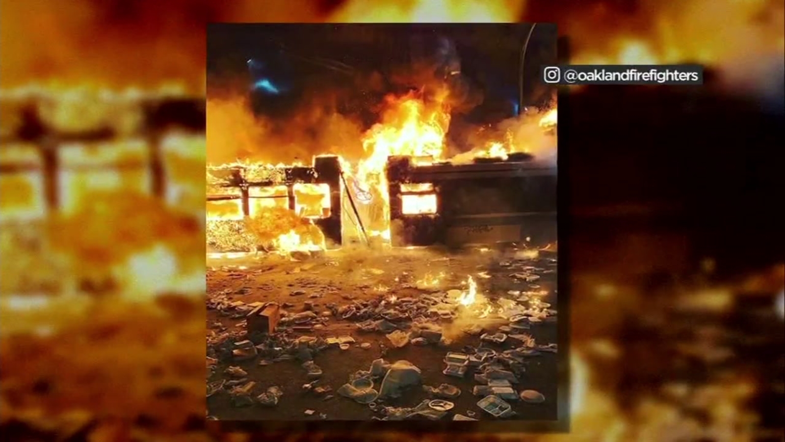 Police say his truck was torched. They say they were overwhelmed by the crowd. Behind him, an AC Transit bus was stuck and the driver was forced to flee.