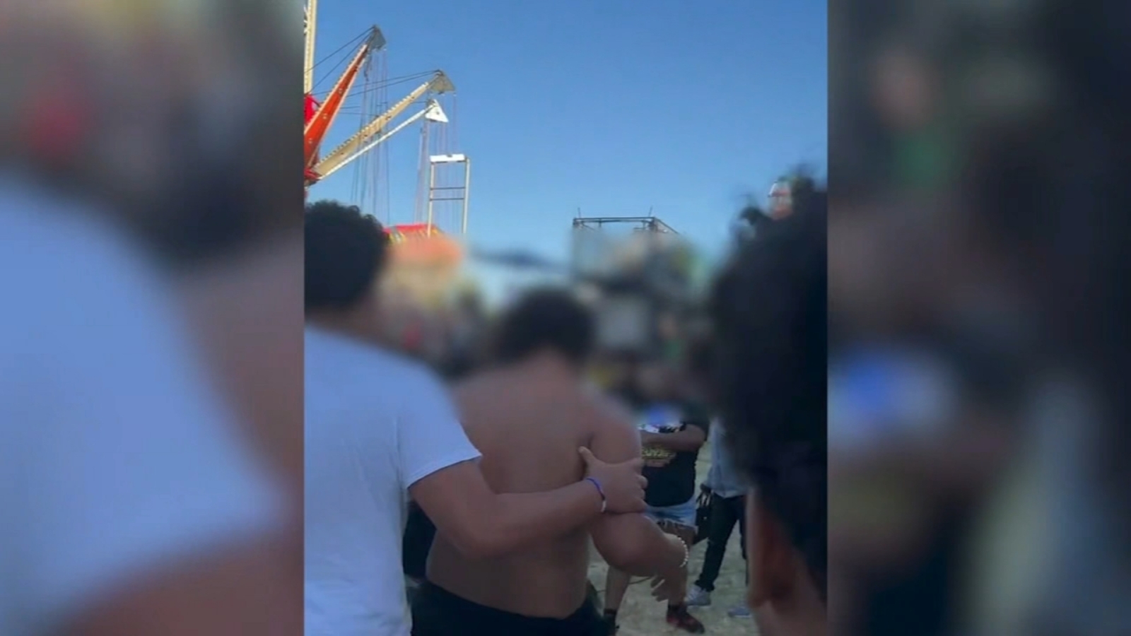 Video shared with ABC7 News shows two groups of teens arguing before a fight broke out. A vendor at the event says the fight grew so large, it damaged several attractions.
