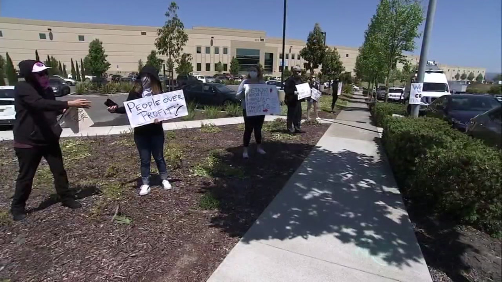 RICHMOND, Calif. (KGO) -- A steady wind. The blasting of horns. And signs representing the times on this May Day 2020 outside an Amazon warehouse in Richmond amid the novel coronavirus pandemic.