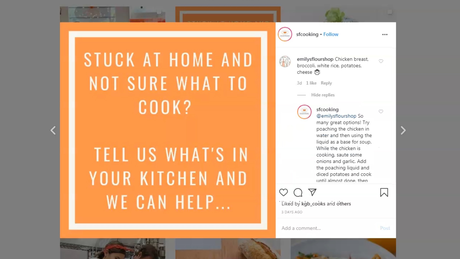 Visit @SFCooking on Instagram for simple recipes and food tips while you're at home.