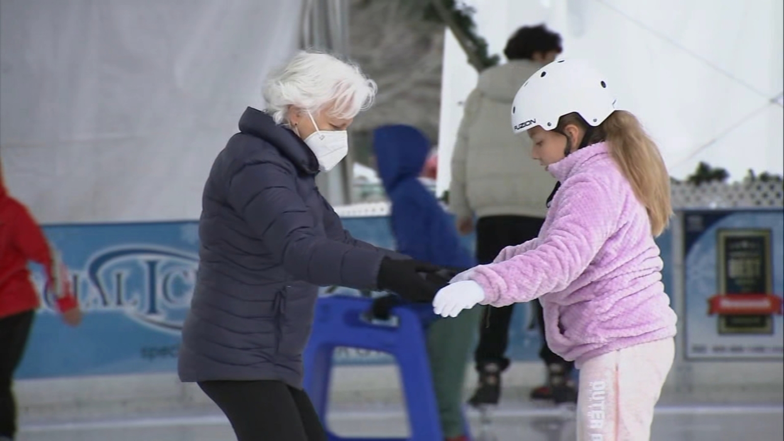 The Angus family went to Walnut Creek to enjoy ice skating together. They say they are not too worried about the virus this winter.