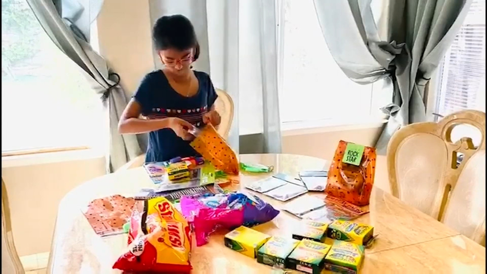 "I made 130 goodie bags, and finally the rest of the money will be for the jackets for the kids who lost their homes," she says.