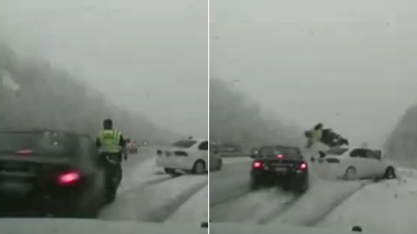 The Utah Highway Patrol released dramatic dashcam video of the moment a trooper was struck by a vehicle on a highway. The trooper survived, and now he's saying of the driver involved, "She's not to be vilified."