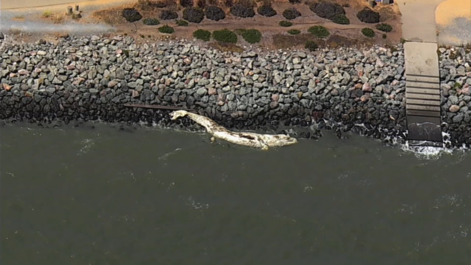 RICHMOND, Calif. (KGO) -- A massive gray whale carcass that washed ashore in Richmond Thursday is no stranger to the region. The carcass has been floating around the San Francisco Bay for a month.