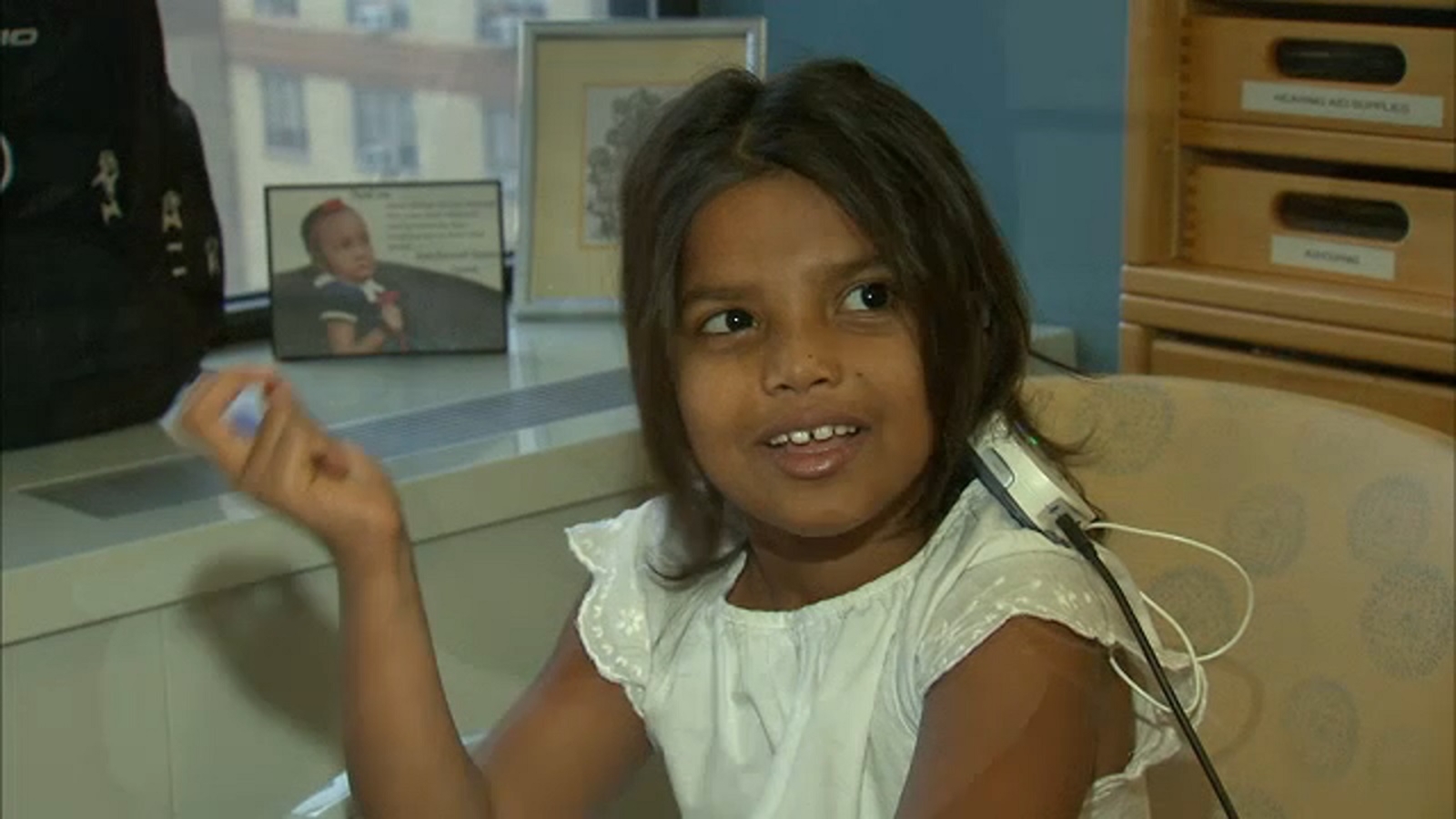 NEW YORK -- 7-year-old Teesa was playing with her crayons, drawing and coloring, perhaps unaware that the rest of her life was about to change. In just a few minutes, she was going to be able to hear out of both ears for the very first time, ending a long, difficult journey.
