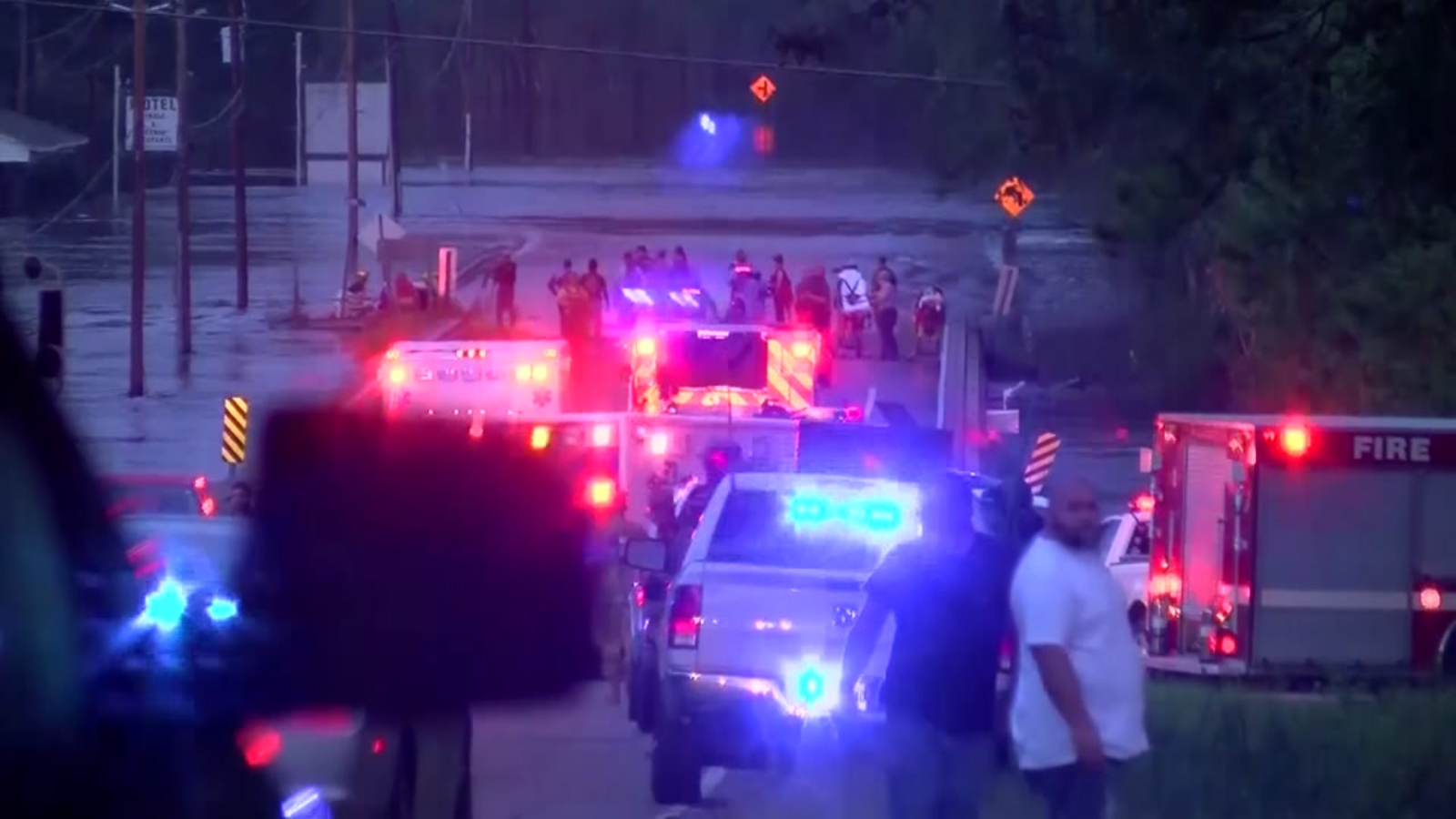 Holden says the deputies tried to get the detainees out but couldn't open the doors. High-water rescue teams plucked the deputies from the top of the van.