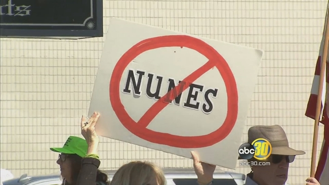 "Devin Nunes behavior, he's not working for the people," protester Betsy Cambareri said. "He's working for the President and that's not his job, he's here for us and I feel his complicity in what's going down."