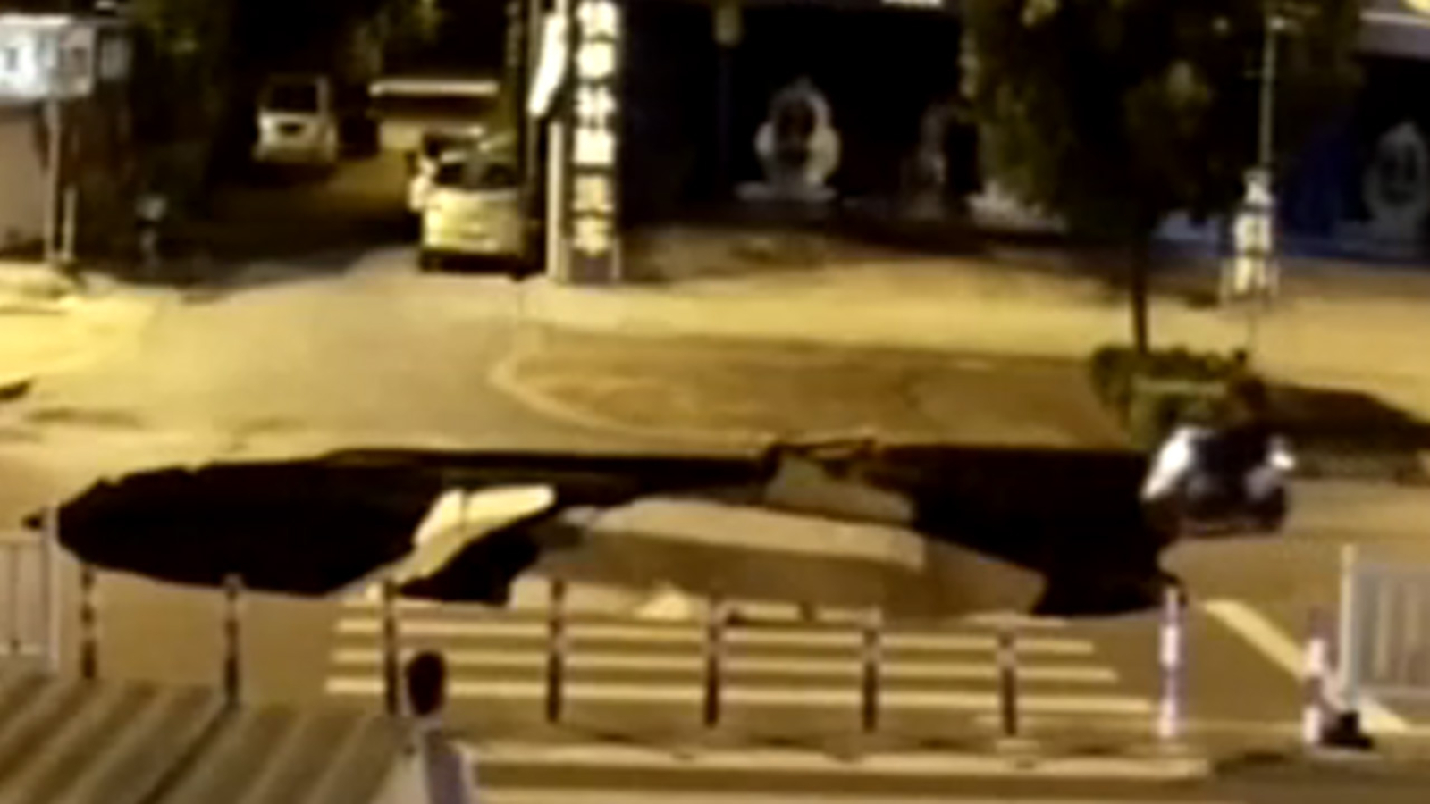 BEIHAI CITY, China -- As if you needed another reason not to look at your phone while driving, a man on a motorbike plunged into a sinkhole in China Thursday.