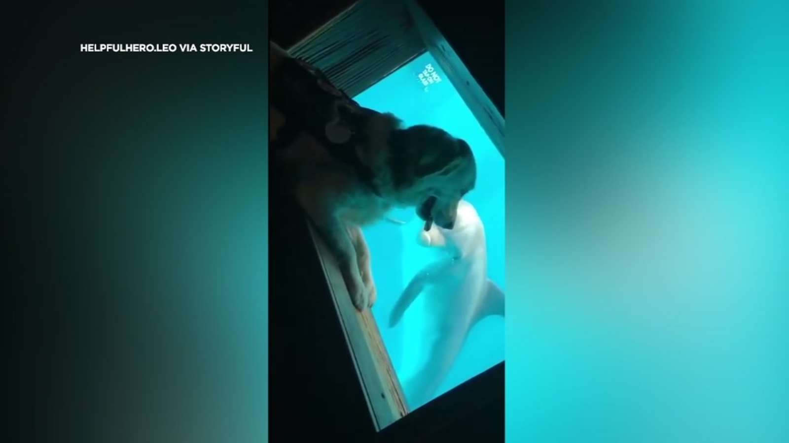 She told Storyful, "It seemed to me as though my service dog Leo and the dolphin Hope were communicating. Leo at first had no idea what he was looking at and seemed a little startled."