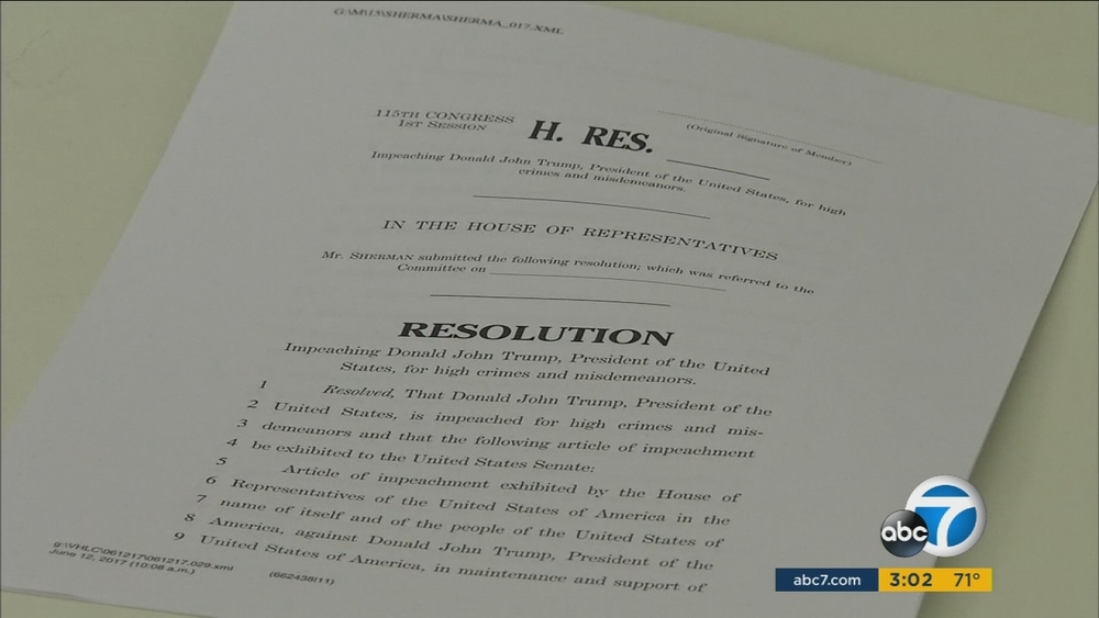 WASHINGTON -- Congressman Brad Sherman, D-Sherman Oaks, announced Thursday that he and another congressman have reintroduced articles of impeachment against President Donald Trump.