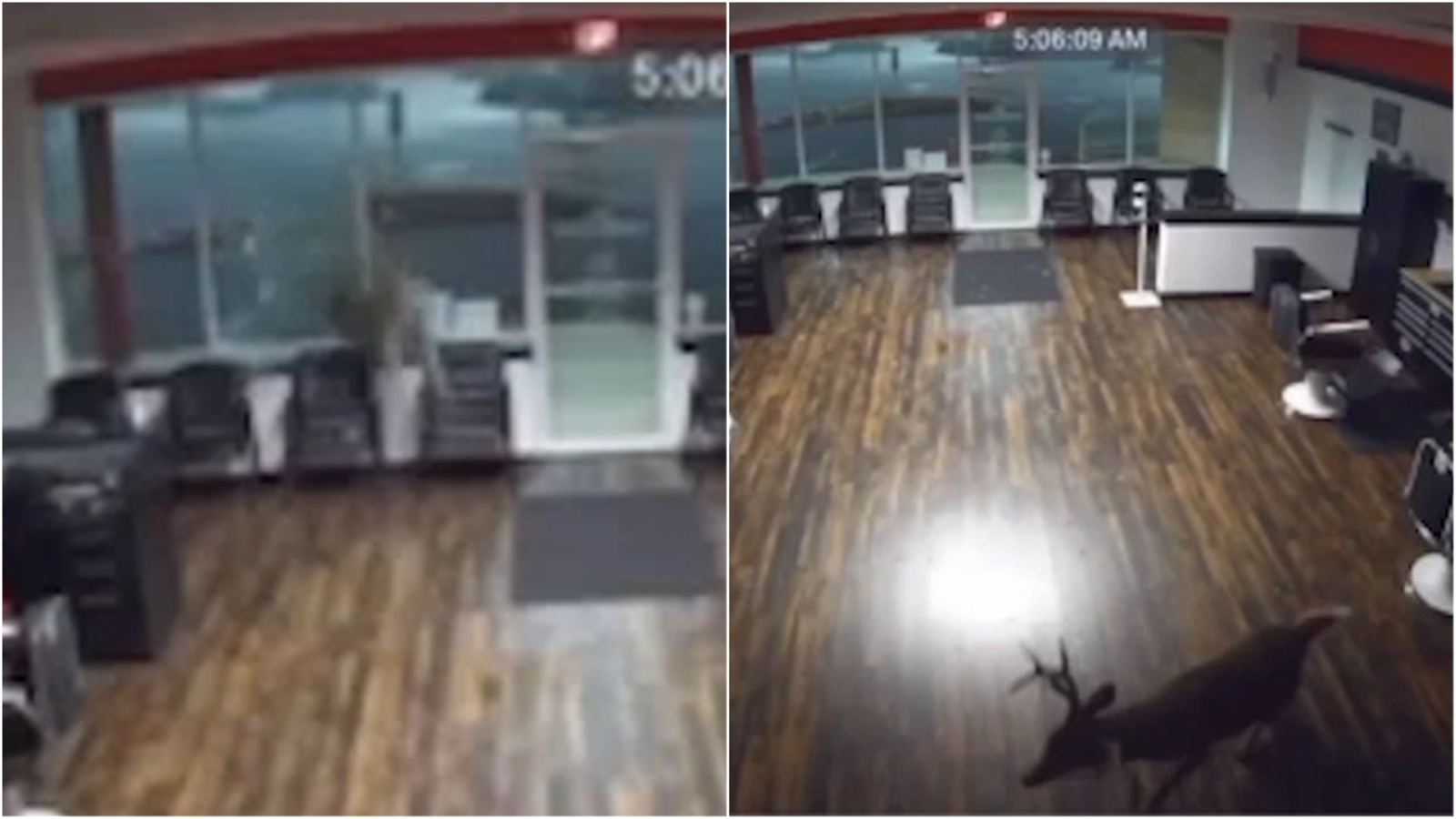 Around 5 a.m. Wednesday, her surveillance camera captured a deer crashing through one of the shop's windows. It was still inside when Brady arrived to work four hours later.