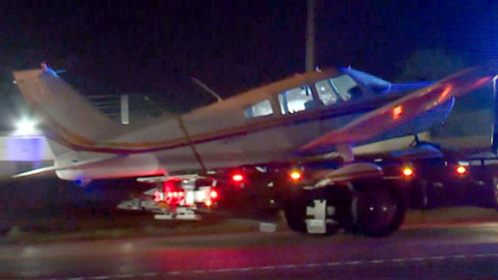 The single-engine Piper plane was towed from the scene and all lanes on the highway had reopened by 5:30 a.m.