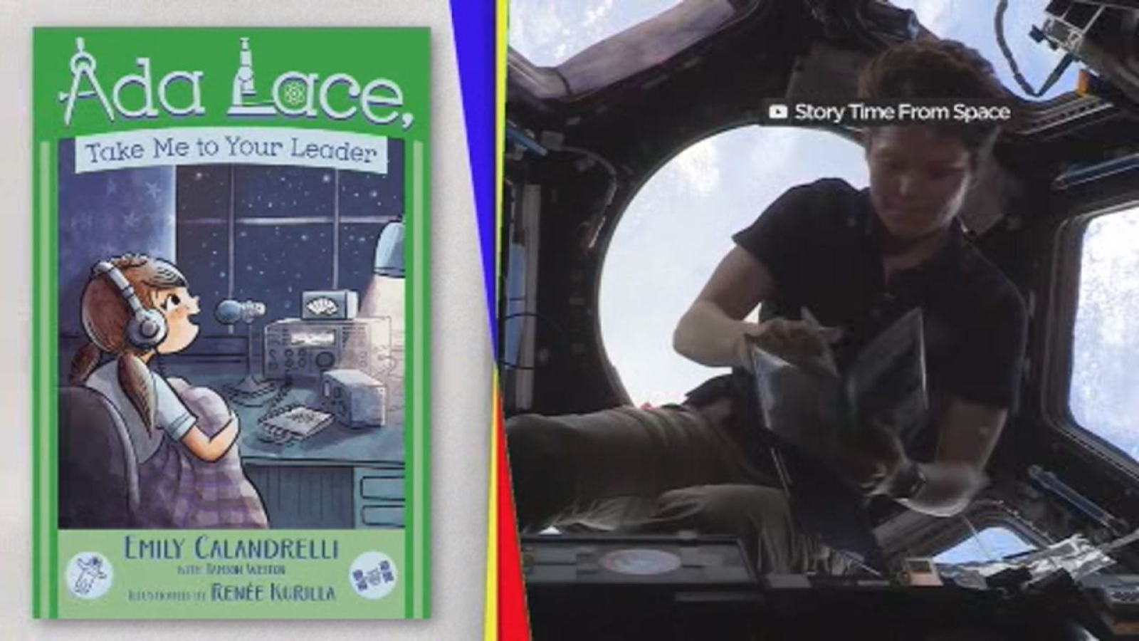 Astronauts on various missions in space are reading popular books to kids on Earth. Books include, "Ada Lace, Take Me to Your Leader" and "Mousetronaut".