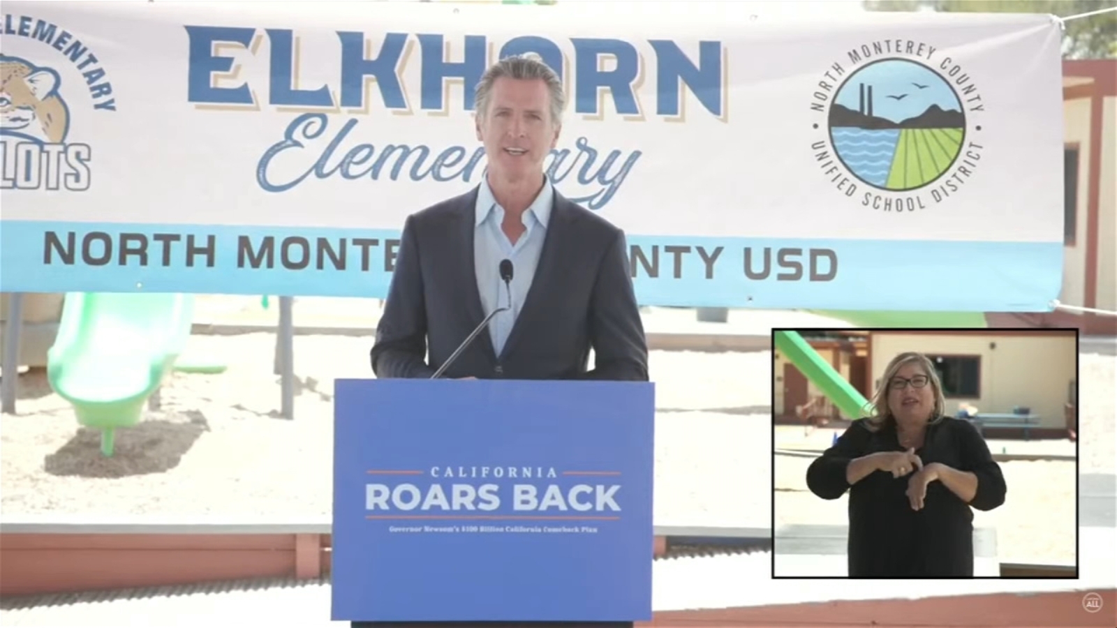 "We talk about an 'achievement gap' -- it's a readiness gap, as much or more than it is an achievement gap," Newsom said at a news conference held at Elkhorn Elementary School in Monterey County. "People aren't left behind as often as they start behind, and that's why that investment is so foundational and so important."