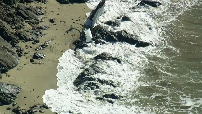 VIDEO: SKY7 shows a part of the plane that crashed in the waters near Half Moon Bay