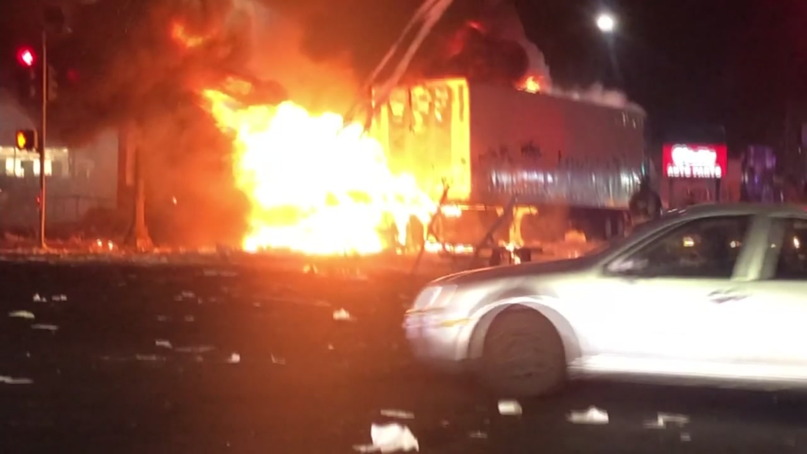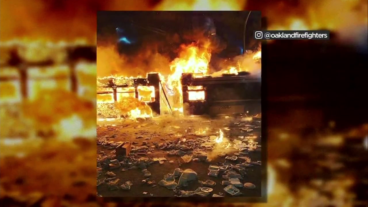 Dozens of viral videos captured the mayhem at International Boulevard and 42nd Avenue as a raucous crowd swarmed the truck, looted it, and then set the truck and an AC Transit bus on fire.