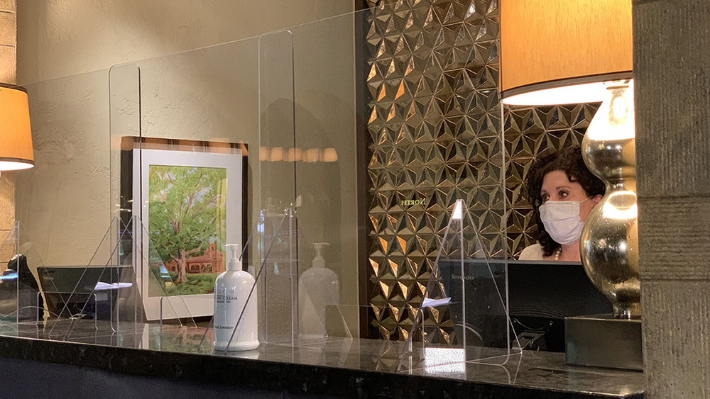 Social distancing was enforced during the ceremony and signage with COVID-19 protocols had been placed throughout the lobby.