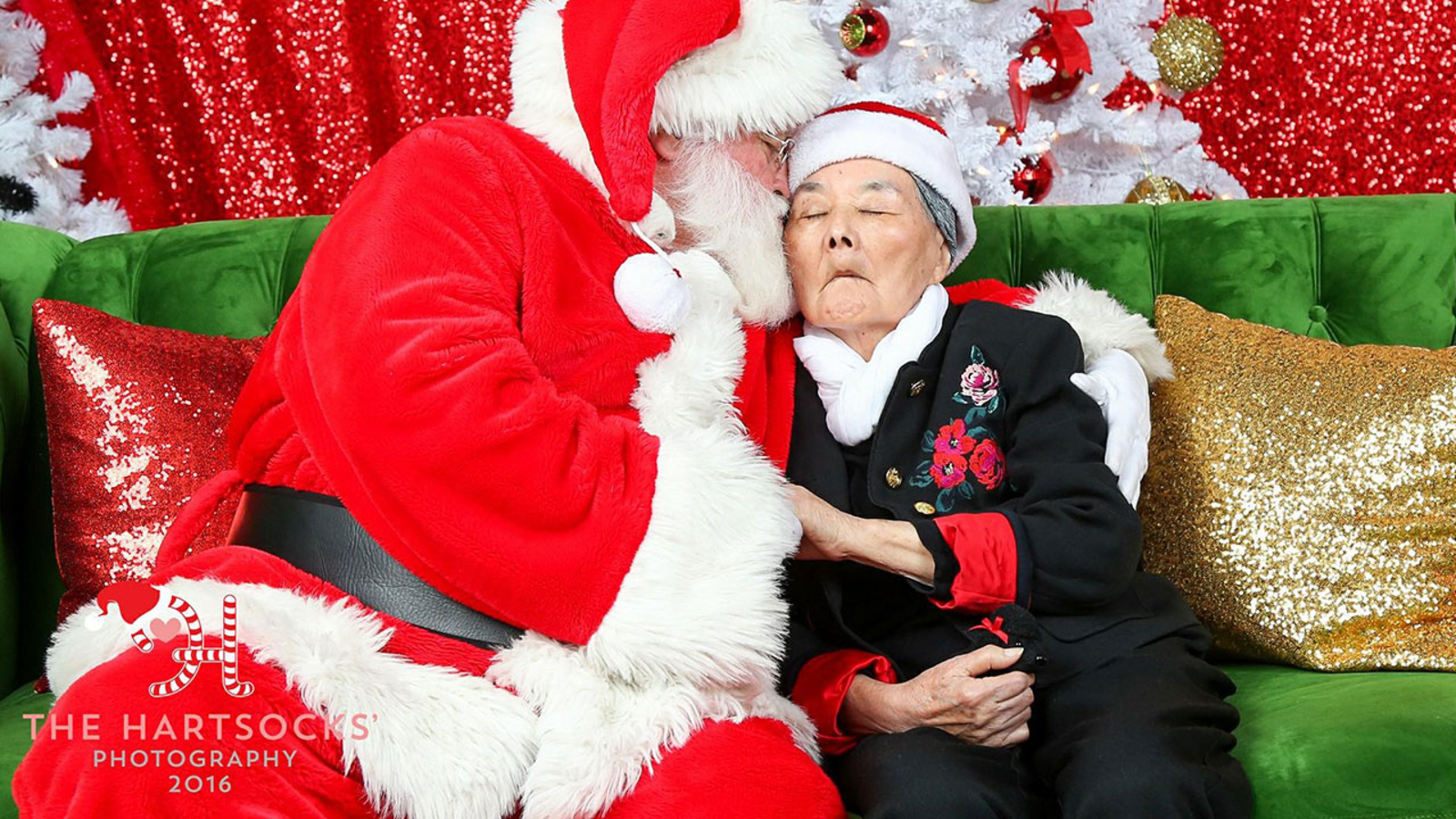 "Karen has a special Santa doll she sleeps with," explained the team at The Hartsocks' Photography in a Facebook post. "[She] doesn't talk too much these days, but enjoys speaking to her Santa doll in Japanese."