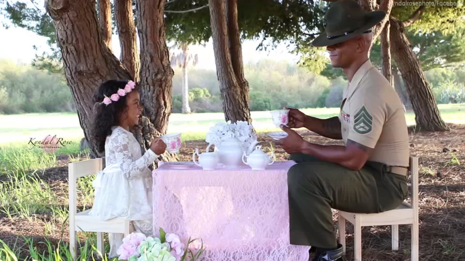 Lizette Porter set up the special tea party and photo shoot for her husband, U.S. Marine Corps Drill Instructor Keven Porter, and their 4-year-old daughter Ashley.