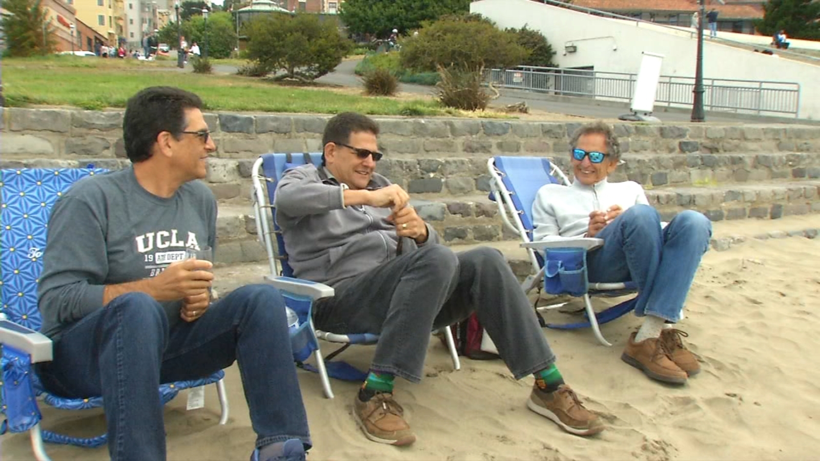 We were in Aquatic Park and came across a father and two of his sons linking arms as they sat in lawn chairs looking out on the Bay.