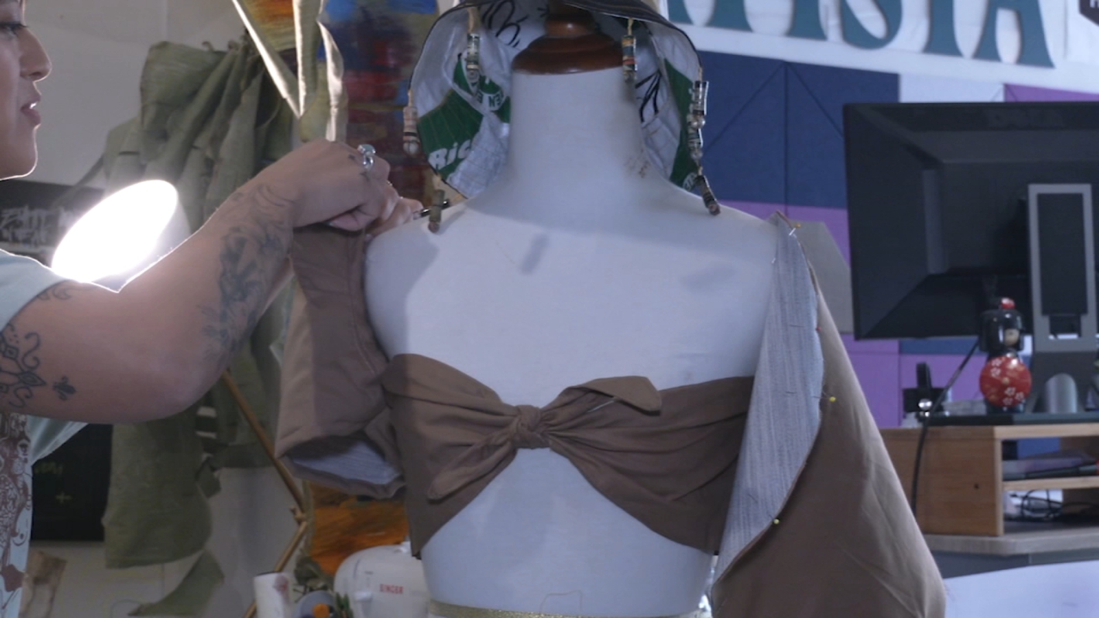 From rough sketch to someone's closet, pieces combine Mateo's love for art and fashion with Filipino American community and culture. Her designs are intentional, Mateo has dedicated much of her work to "pinays," or Filipino women who are often depicted as landscape.