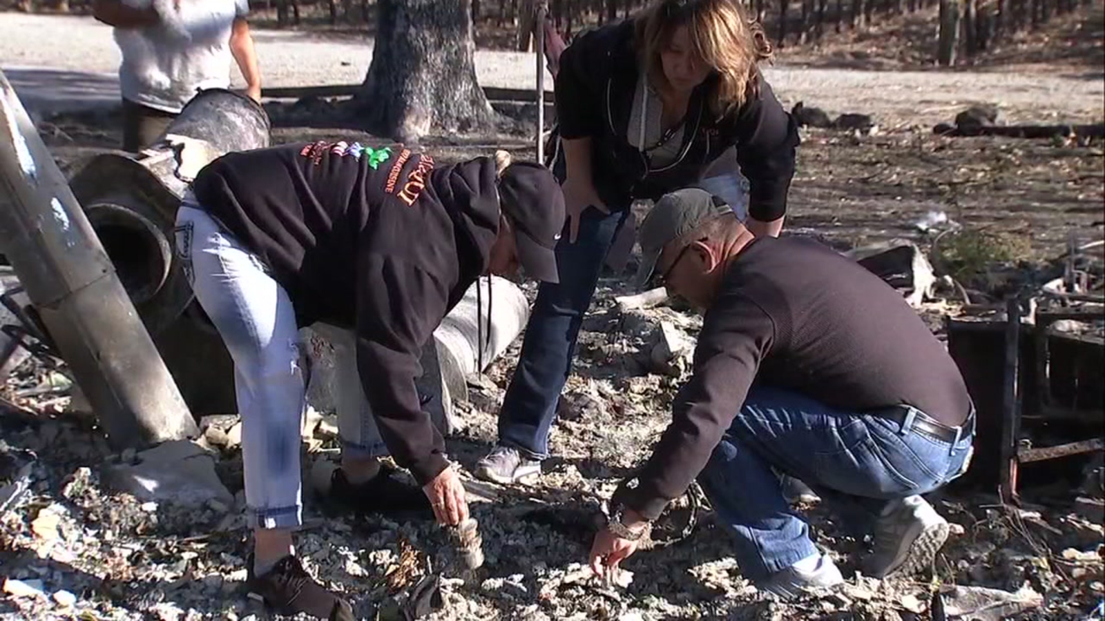 Bernadette, joined by two friends and their dog Canela, spent more than two hours Thursday night sifting through ashes looking for her husband's and father's wedding rings. Just before dark, they found Justo's ring which gave them hope they could find more.