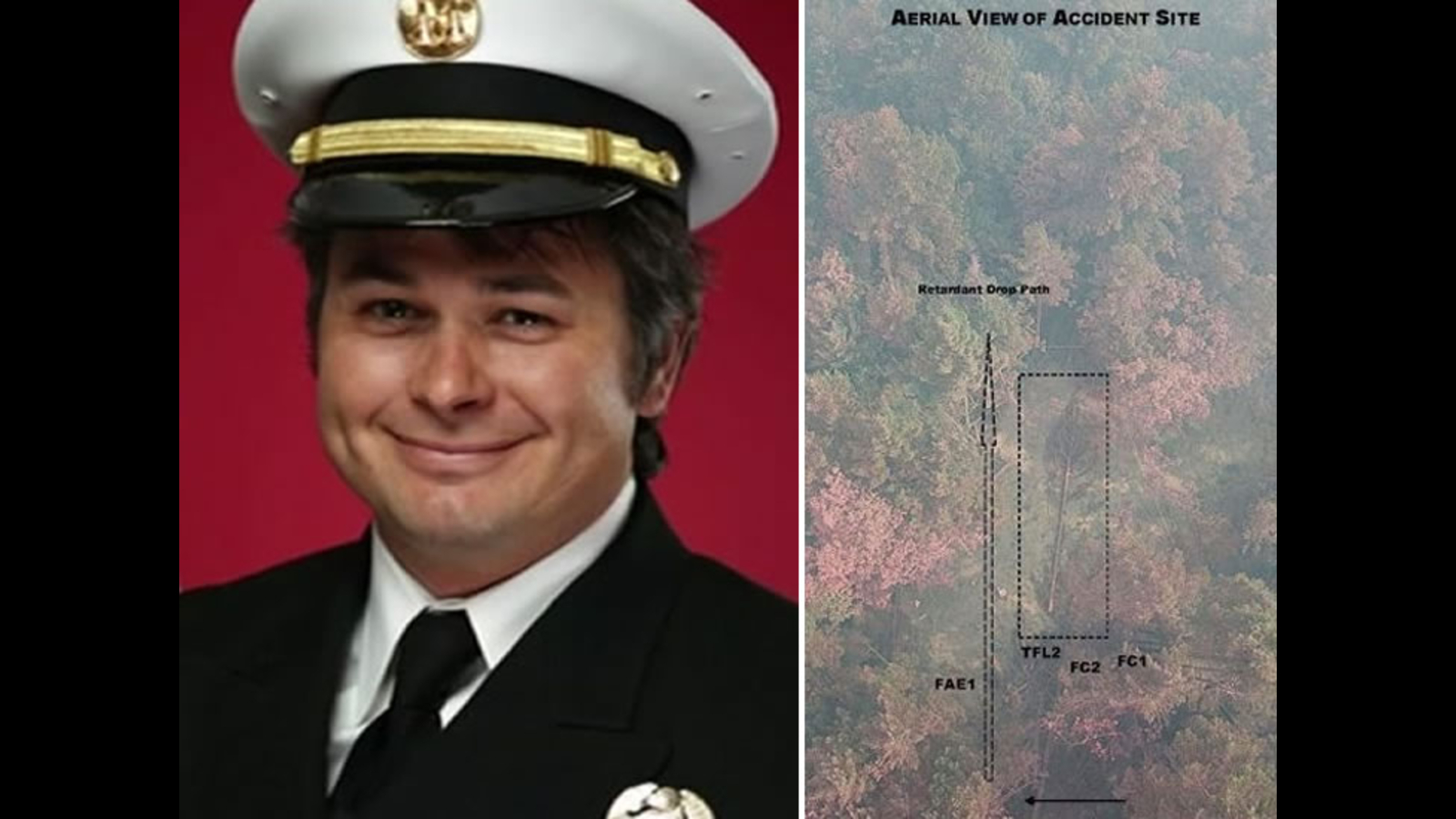 Chief Burchett died when the retardant knocked over a Douglas Fir. The report even includes an aerial photo of it.The tree was 87 feet tall and 15 inches across.