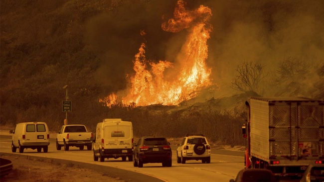 Massive wildfire burns near Southern California freeway