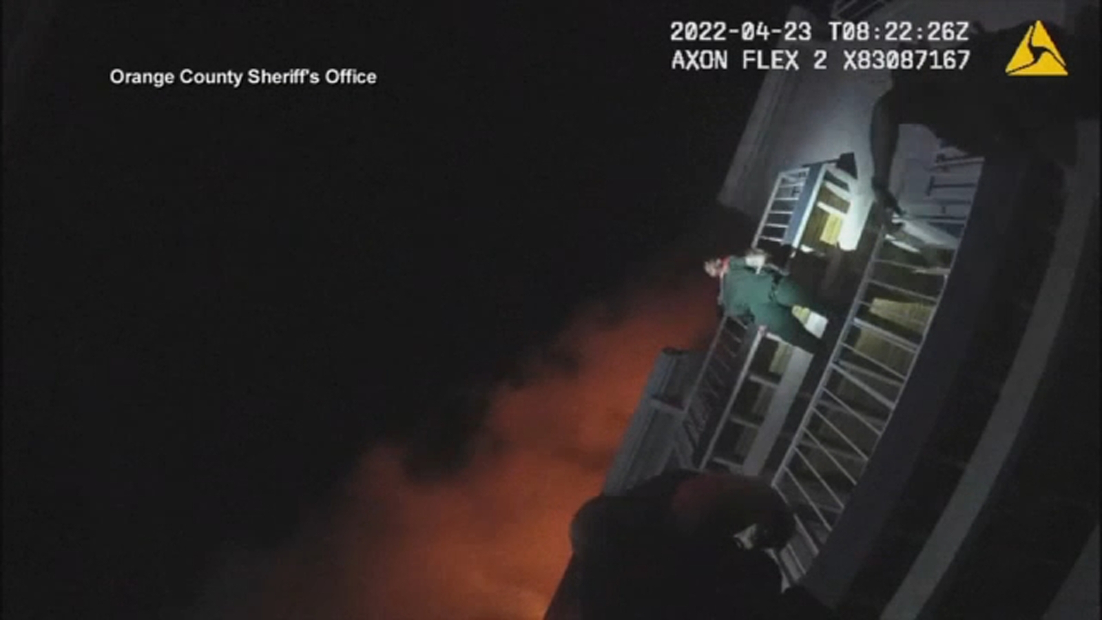 ORLANDO -- A Florida deputy climbed the outside of an apartment building to rescue a one-year-old girl from a fire early Saturday and the dramatic scene was captured on the deputy's body camera, officials said.