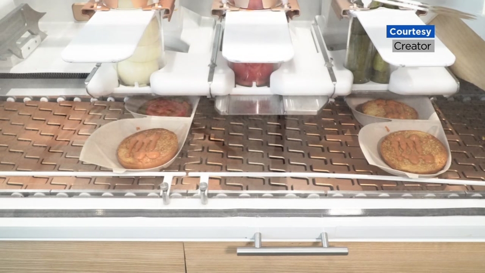 Creator is in the city's SoMA neighborhood. Twenty computers, 350 sensors and 50 actuators cook and assemble burgers.