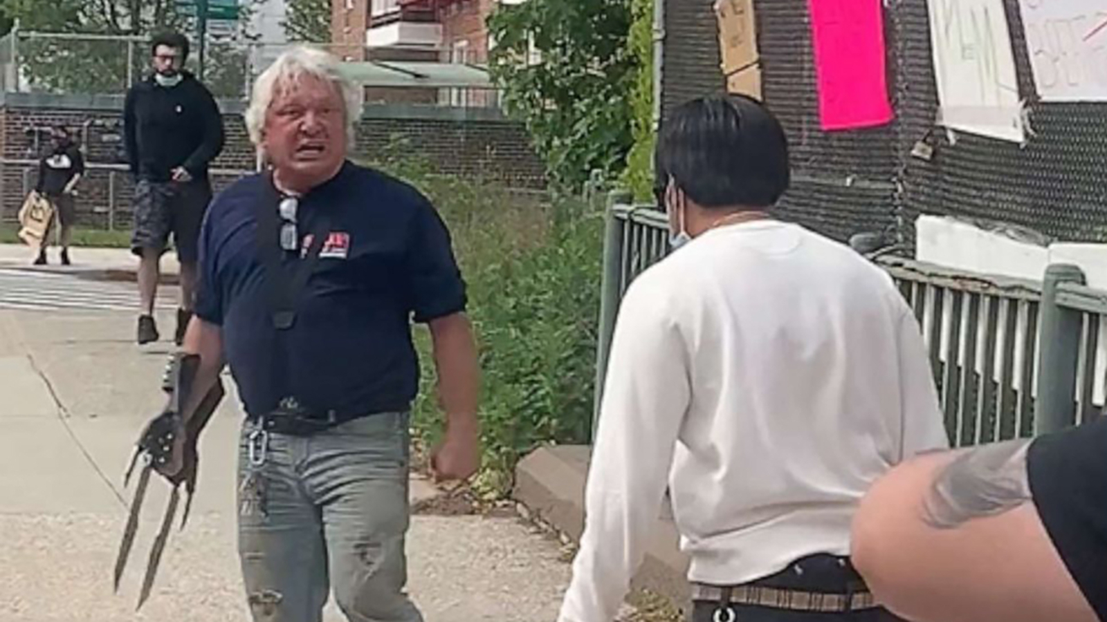Prosecutors said that Cavalluzzi went after demonstrators while wearing gloves adorned with jagged blades and then tried to run them over driving his vehicle on the sidewalk, the Queens District Attorney's Office said.