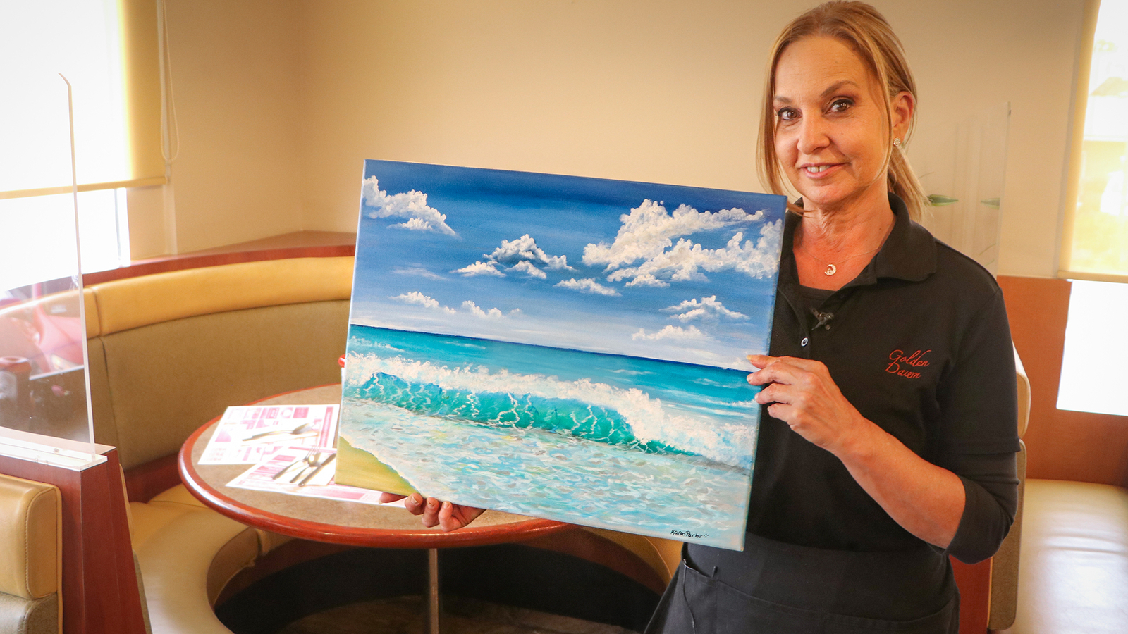 Suddenly, the beige walls at the Golden Dawn popped with vibrant colors. Parker painted scenes of exotic beaches and fairytale waterfalls, partially inspired by growing up in Hawaii while her father served in the Air Force.