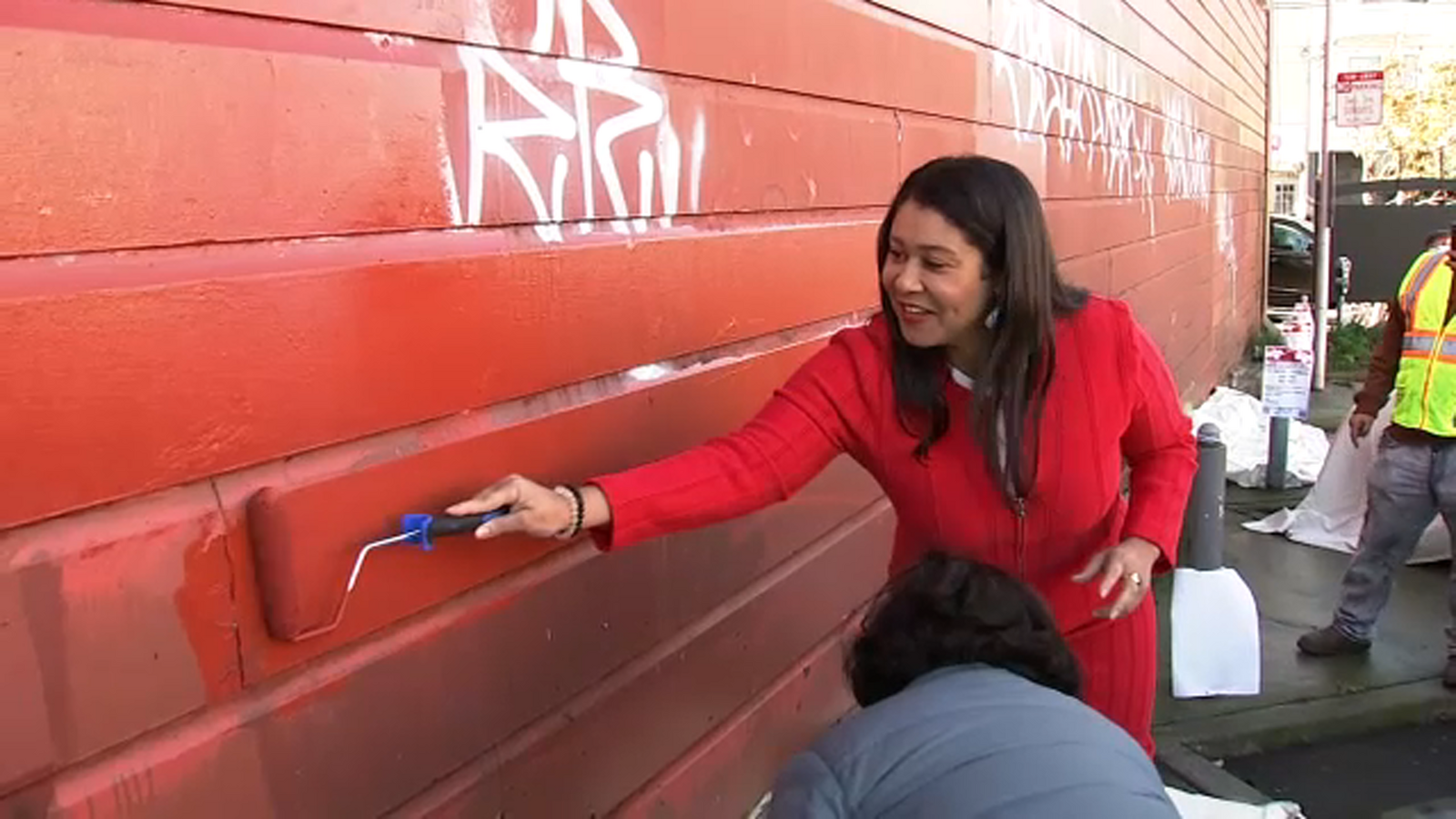 Mayor London Breed showed off her painting skills, kicking off a new pilot program to reduce the amount of graffiti in commercial corridors around the city.