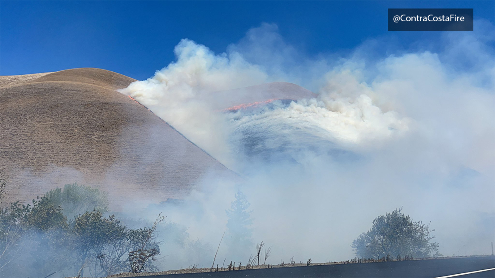 The fire is burning near Kirker Pass Road and Nortonville Road near Clayton and Pittsburg.