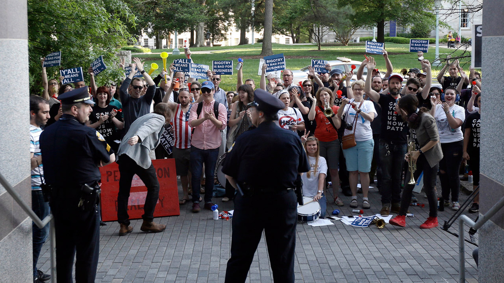The governor has become the public face of the law, which has been the subject of fierce criticism by gay rights groups, corporate executives and entertainers demanding that the law be repealed. North Carolina has already paid a price for the law, with some business scaling back investments in the state and associations cancelling conventions.