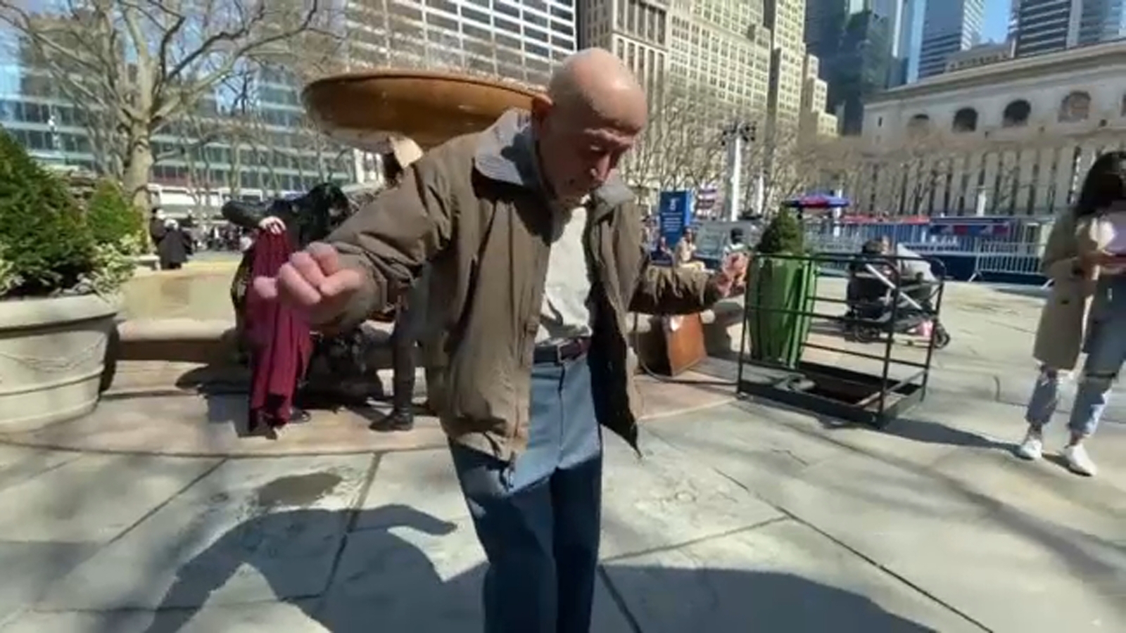"It was a joke from, I think, probably Betty Davis, she says, 'Old age is not for sissies,'" said Holzman, sitting on a wooden chair in the shadow of a large umbrella spread next to the famous Josephine Shaw Lowell Memorial Fountain in Bryant Park.