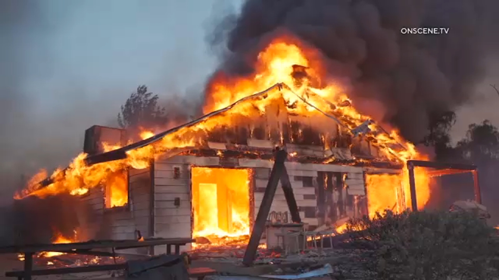 Footage from our sister station ABC7's chopper showed multiple residential structures on fire.