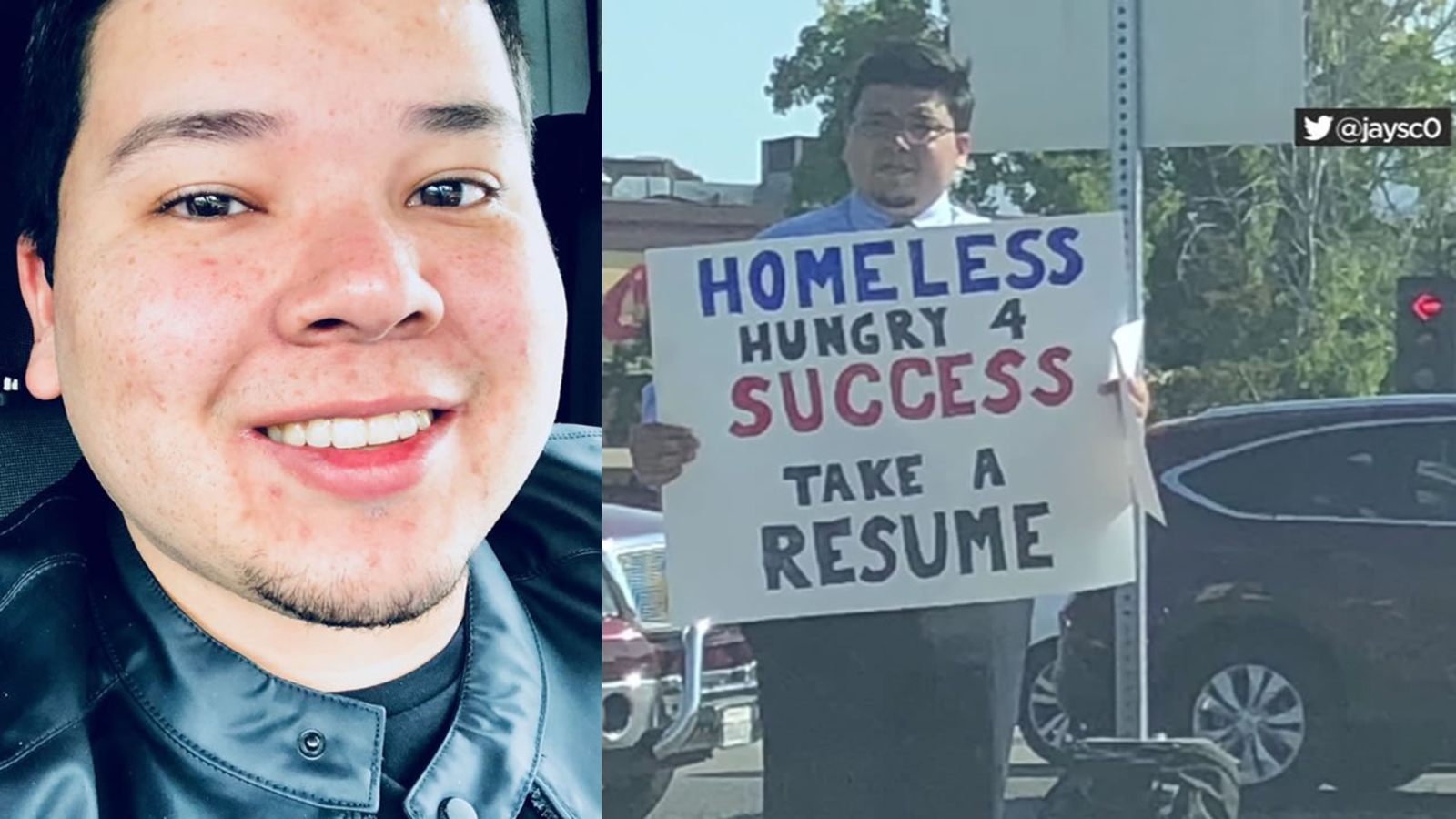 MOUNTAIN VIEW, Calif. (KGO) -- "Homeless/ Hungry 4 success," was the message David Casarez, 26, held on the busy intersection of El Camino and North San Antonio Road.