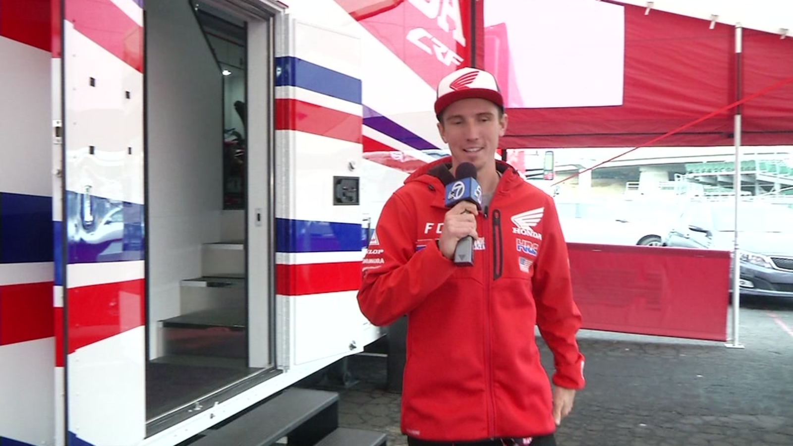 Riders will race rain or shine, but since the elements kept them from practice, racer Cole Seely gave us a rare, behind-the-scenes look at the Honda Powersports rig.