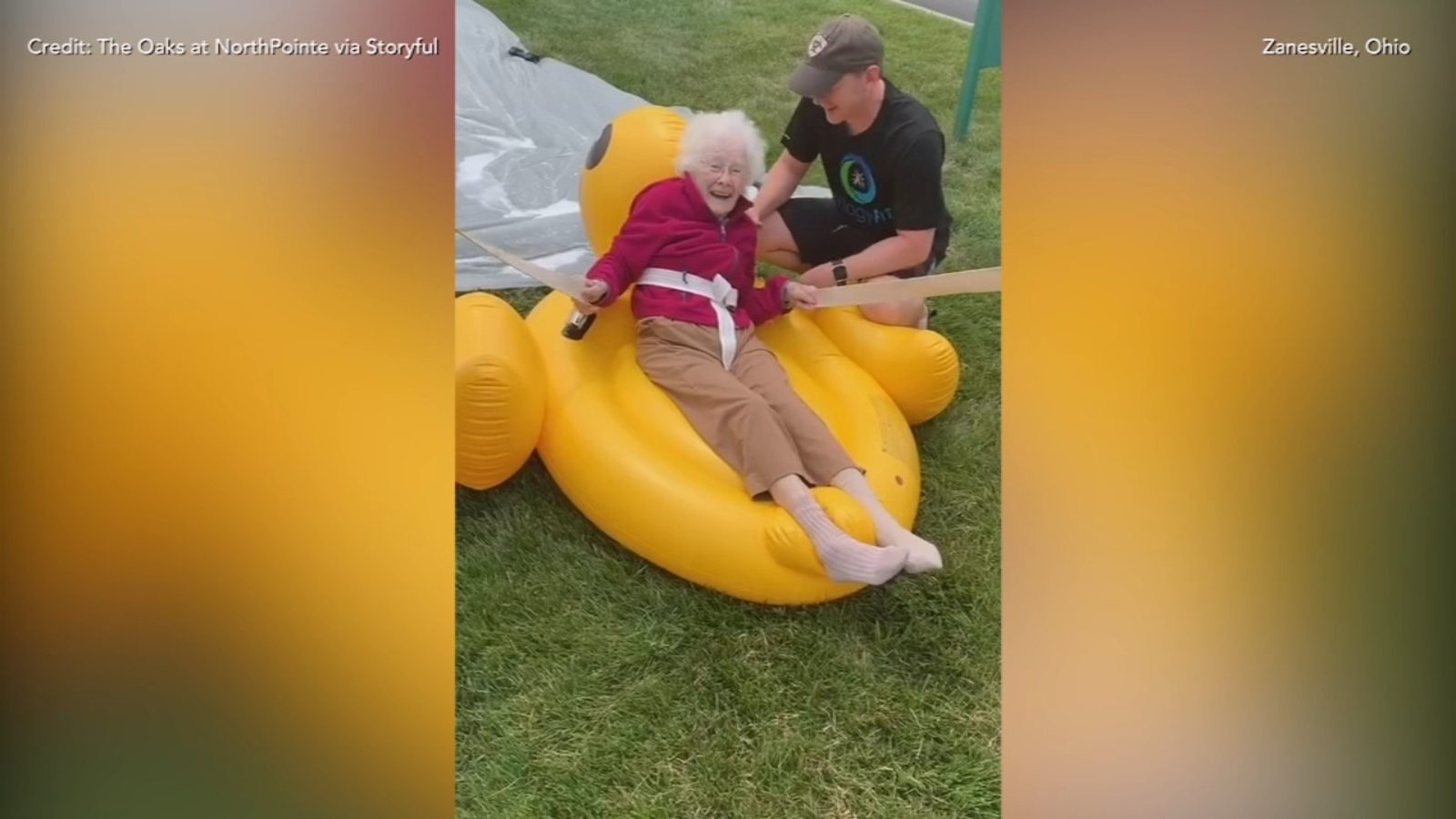 ZANESVILLE, Ohio -- A resident at an assisted living facility in Zanesville, Ohio proved you're never too old to enjoy a Slip 'N Slide!