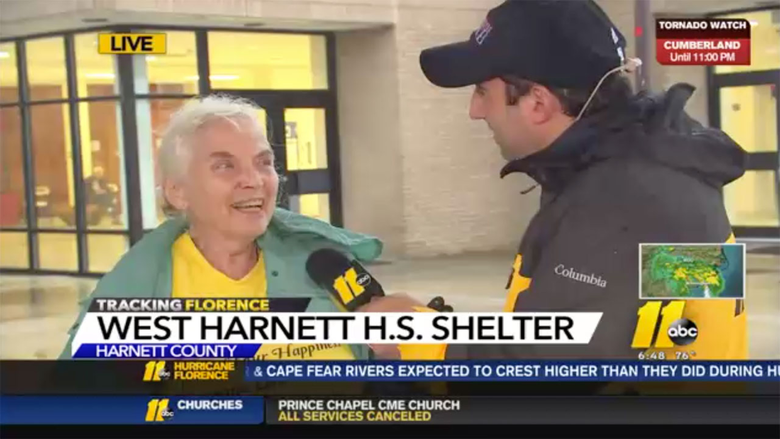 During an interview at the Western Harnett High School shelter, resident Ruth Daby told ABC11 she lives in a mandatory evacuation zone near the Little River and was worried after seeing how Hurricane Matthew impacted her neighborhood.