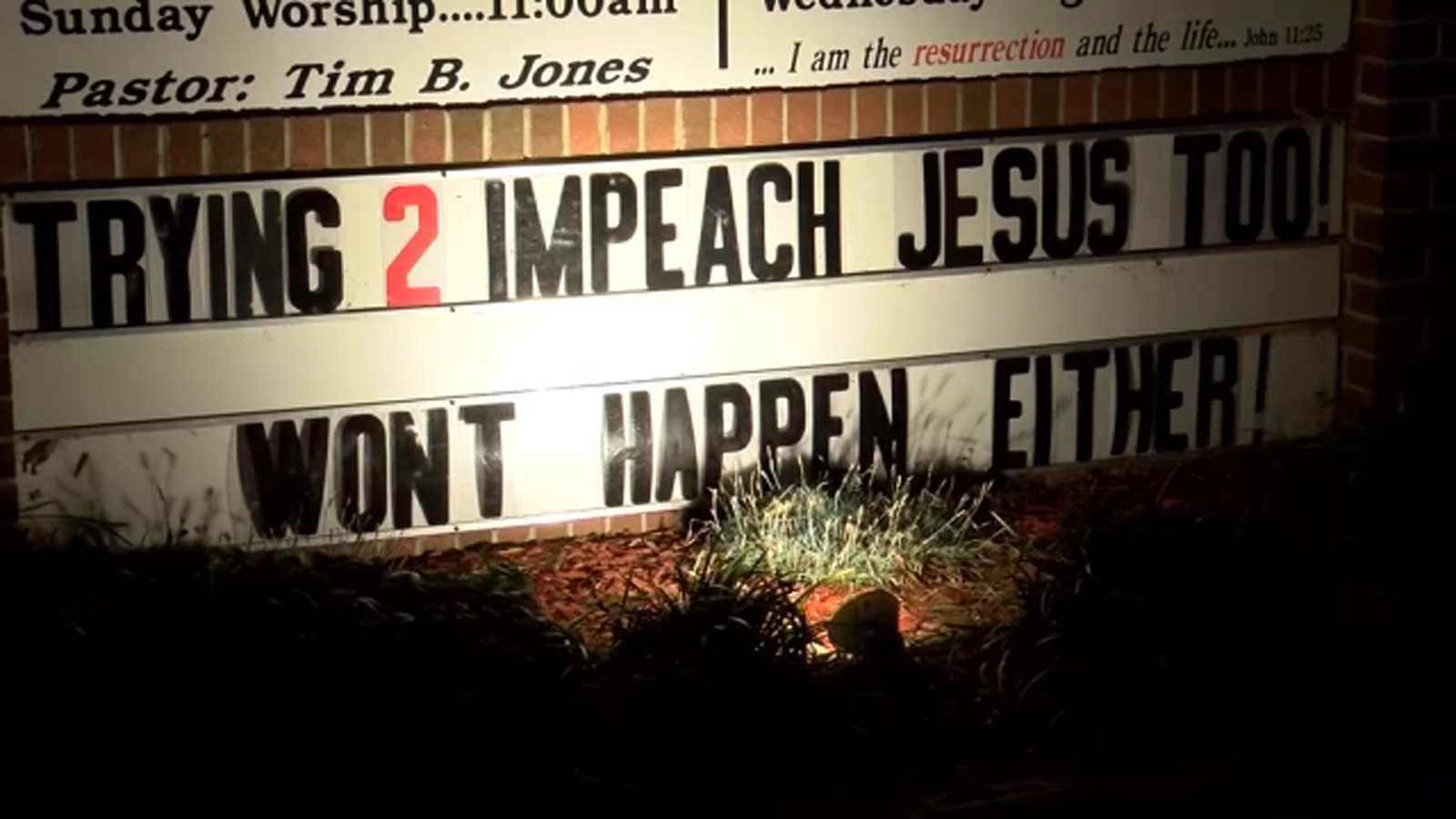 Pastor Tim B. Jones is at the center of the controversy after posting a sign at Resurrection Baptist Church that reads "TRYING 2 IMPEACH JESUS TOO! WONT HAPPEN EITHER!"