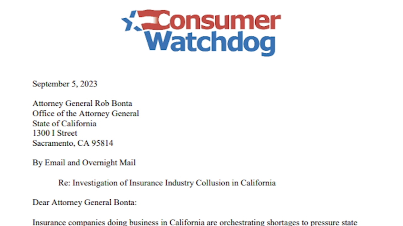 SACRAMENTO, Calif. (KGO) -- In a letter sent to California Attorney General Rob Bonta, Consumer Watchdog is calling for an investigation into California insurance companies and professional associations.